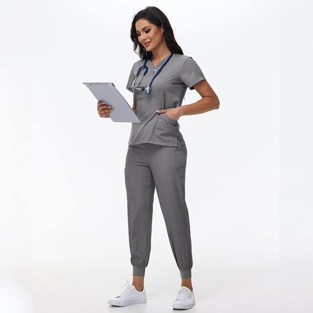 Ensembles de travail pour le personnel hospitalier unisexe au design de couleur unique Uniformes de gommage d'infirmière pour hommes Top Coat pour femmes
