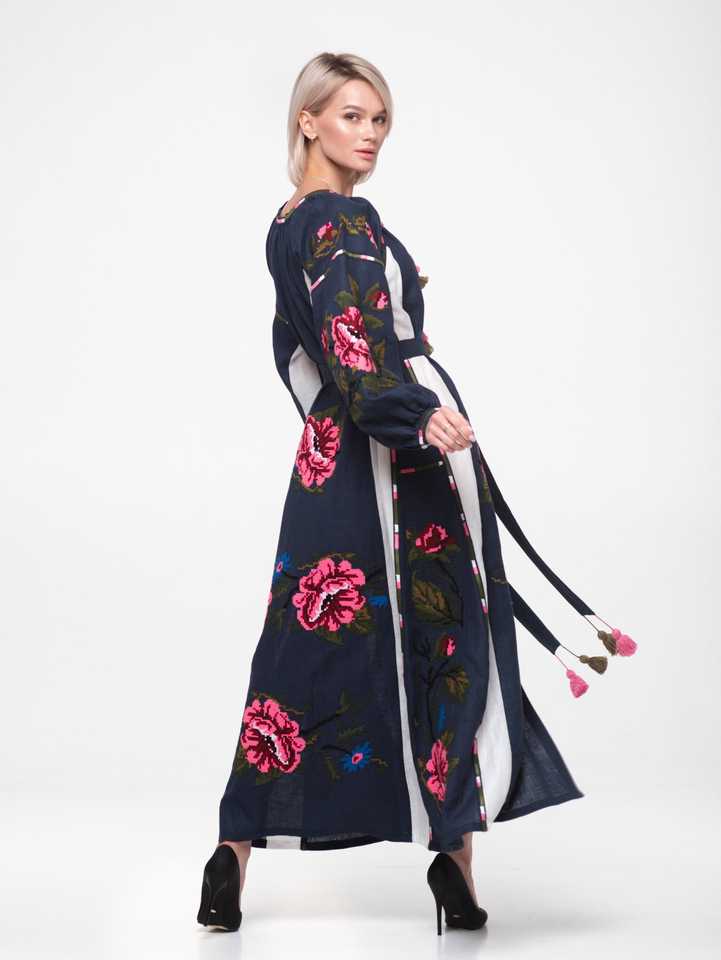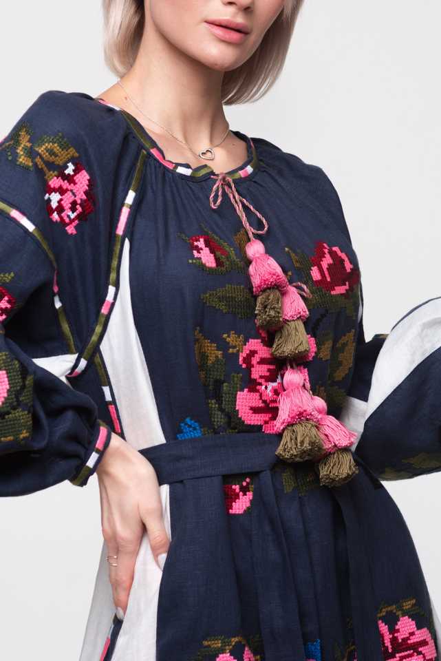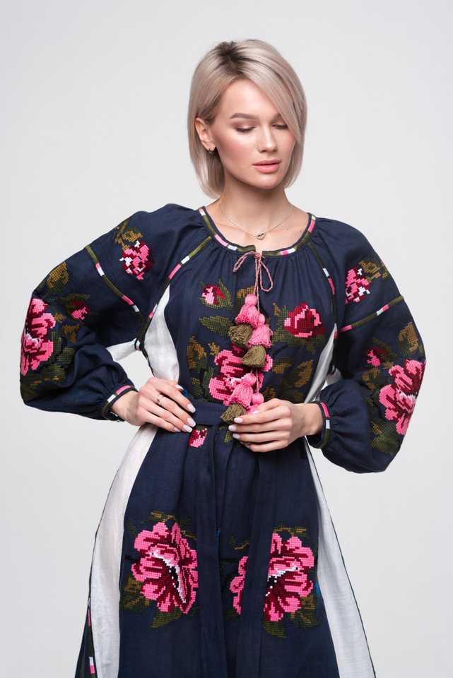 Robe de couleur unique avec broderie de fleurs ukrainiennes manches longues bouffantes pour femmes été meilleure qualité tous les temps et meilleur 2025
