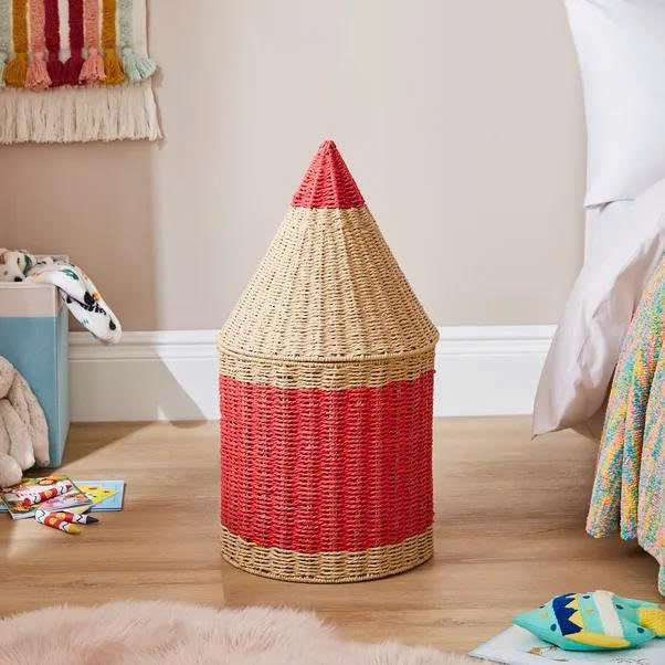 Panier de rangement en papier fait main de grande capacité, au design et à la forme de crayon uniques, idéal pour les chambres d'enfants.