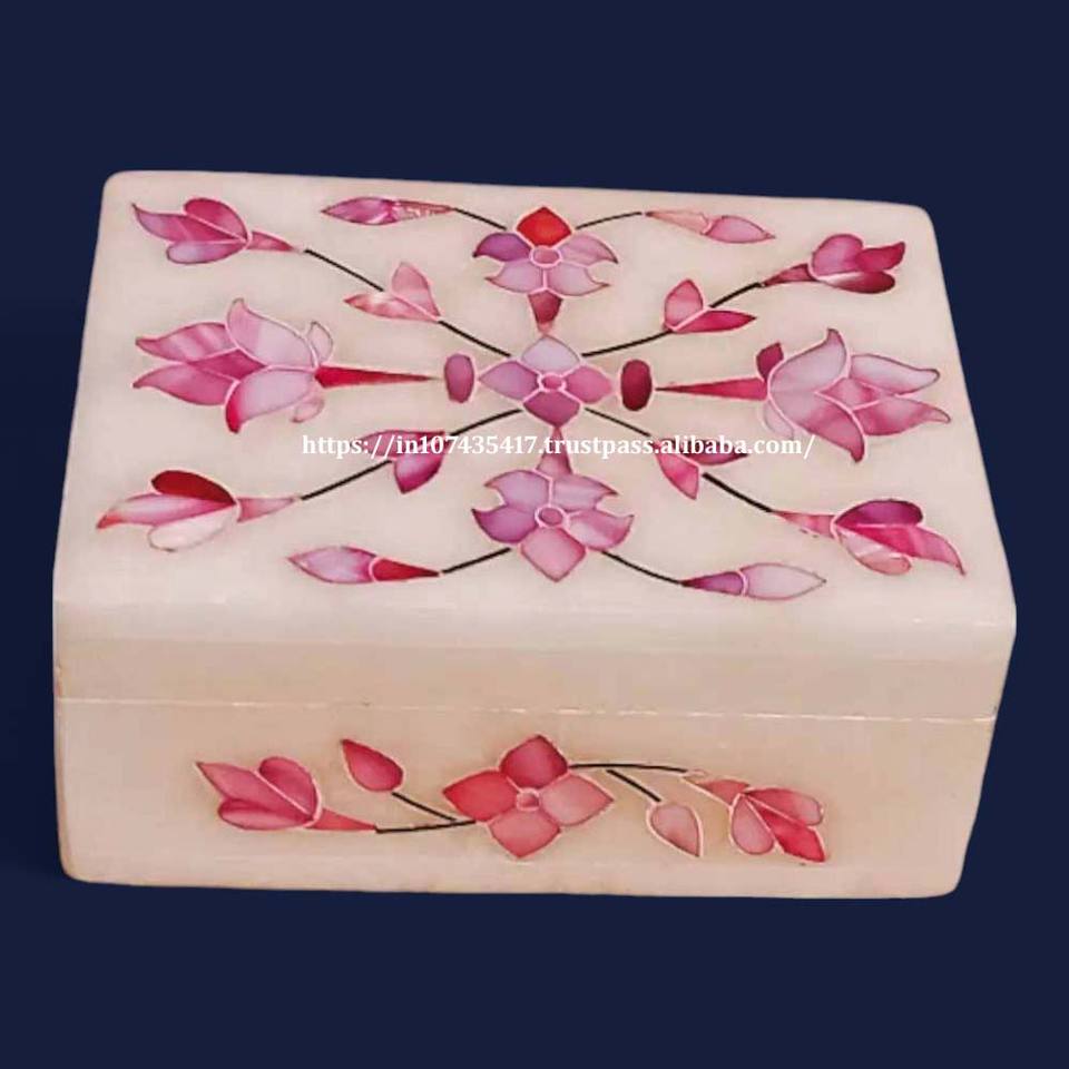 Boîte d'incrustation de marbre de produit fait à la main moderne créatif unique avec l'utilisation de matériel de nacre pour le stockage de bijoux article d'emballage de cadeau