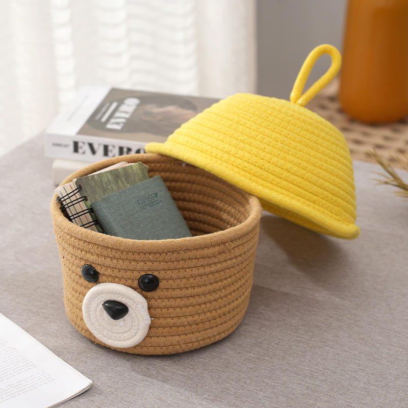 Panier de rangement unique en corde de coton tissé mignon pour bébé jouet tissé étagère fourre-tout de rangement doux organisateur de placard mini