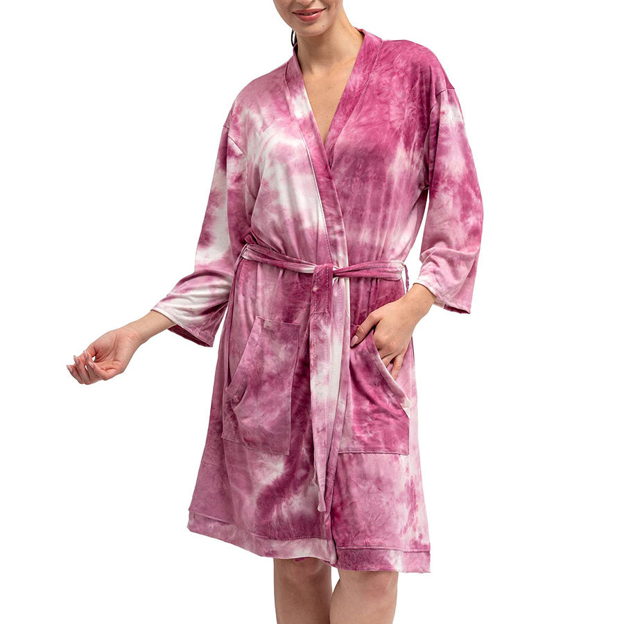 Peignoir en coton tricoté léger pour femmes Conception unique avec tissu gaufré Longueur de mollet à manches longues OEM ODM Utilisation hôtelière disponible