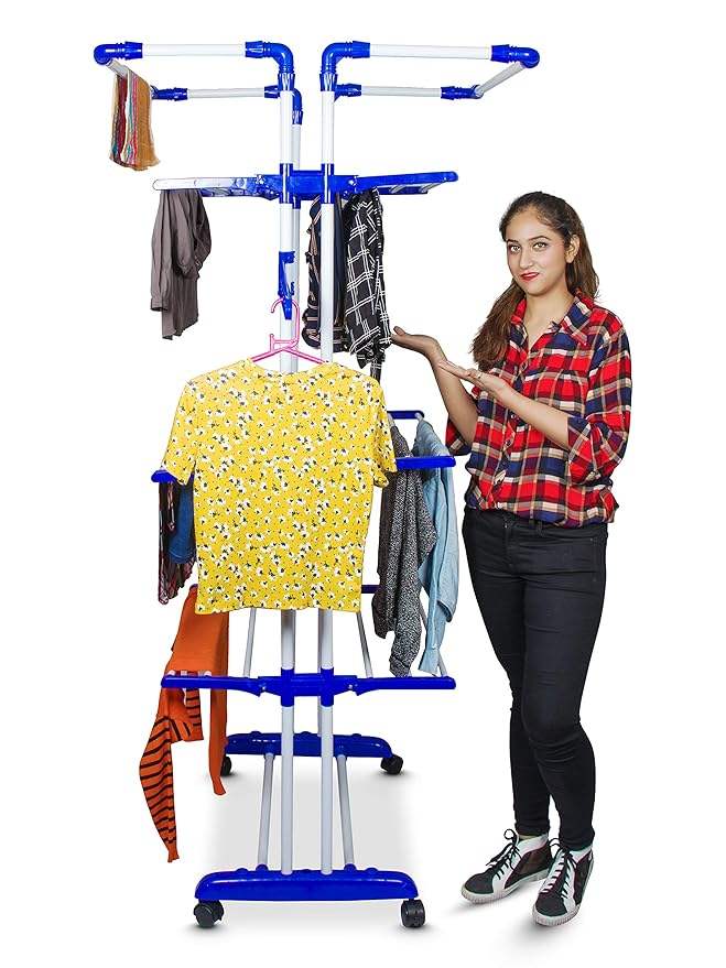 Support de séchage de vêtements en acier de couleur bleue avec système de roue de rupture et support de séchage (acier inoxydable)