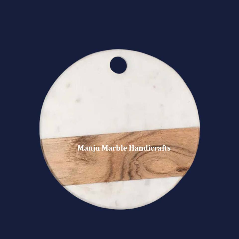Planche à découper en marbre blanc pur de conception unique et d'addition limitée avec l'utilisation de forme ronde pour l'article de cadeaux de décoration à la maison