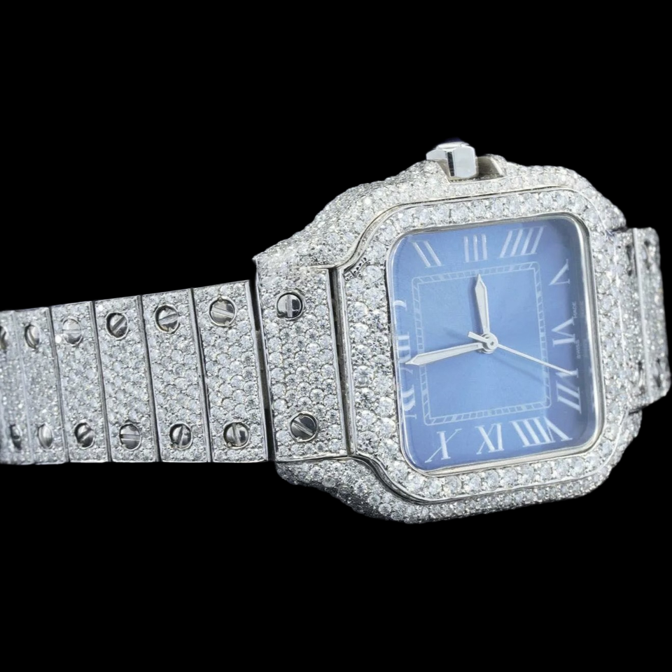 Montre mécanique à quartz au design unique, cadran bleu, boîtier carré, sertie de diamants Moissanite, cadeau exclusif pour les créateurs de hip-hop