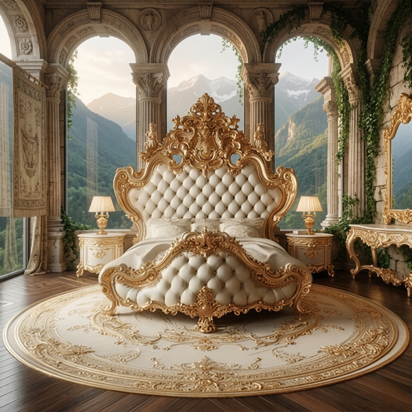 Unique Design Button Tufted Wooden Bed with Classical Engraving Luxury Antique Bedroom Furniture