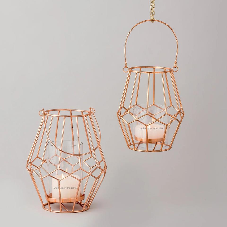 Unique Design Copper Plated Metal Wire Candle Lantern for Hanging & Tabletop Home and Christmas Decorations Lanterns
