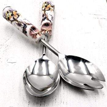 Ensemble de couverts au design unique en acier inoxydable avec poignée de travail en émail, parfaits pour les repas à la maison et les ustensiles de cuisine.