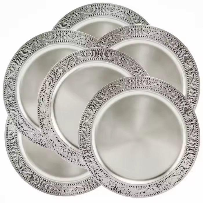 Chargeur en métal de fer plaqué étain foncé de conception unique nickelé pour la maison et le mariage plats et assiettes décoratifs de table