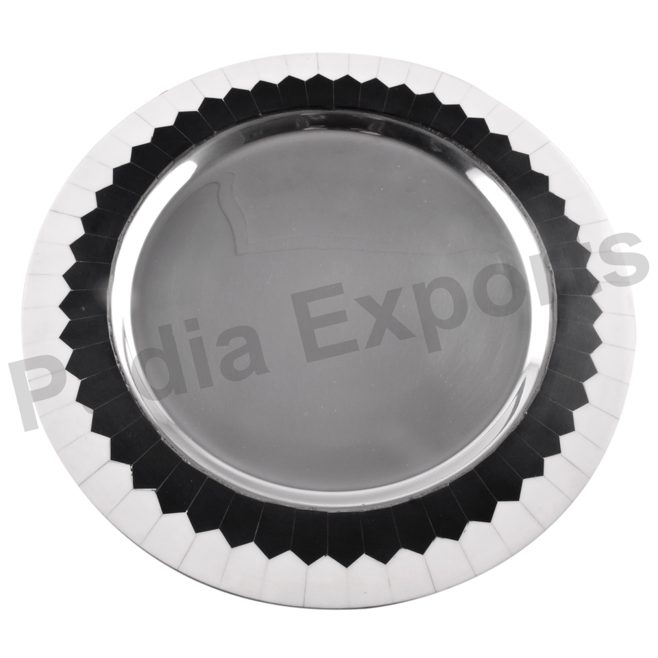 Assiette de Présentation Décorative en Acier Inoxydable Poli, Design Unique et Écologique, pour Mariages et Dîners Prestigieux
