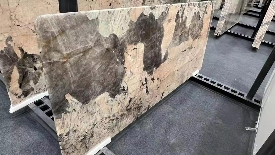 Comptoirs de cuisine modernes d'approvisionnement d'usine nord grande dalle de granit Natraj Stonex pierre naturelle polie exportations de surface inde