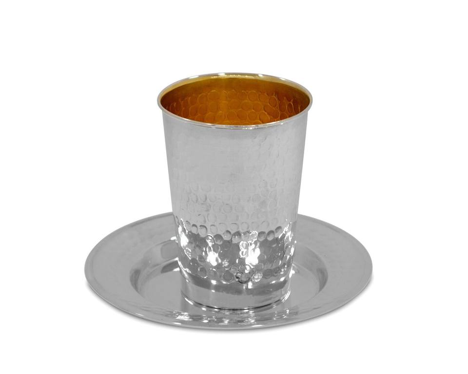 Unique Design Hammered Gold Kiddush Cup Set Matching Plate Premium Handcrafted Eco-Friendly Sustainable Customizable Color Wine