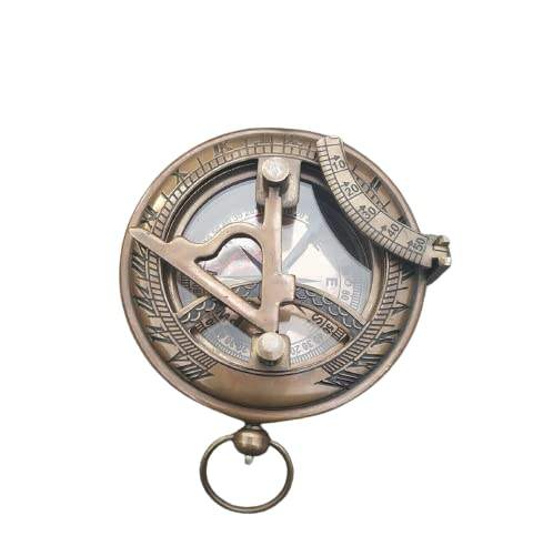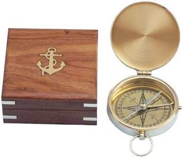 Boussole plate et chaîne en laiton personnalisée classique au design unique fait à la main avec étui en cuir personnalisé gravé antique