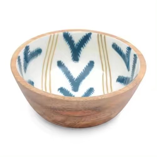 Bol en bois imprimé à la main de conception unique en bois de manguier émaillé personnalisé pour une utilisation polyvalente de table