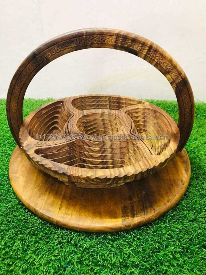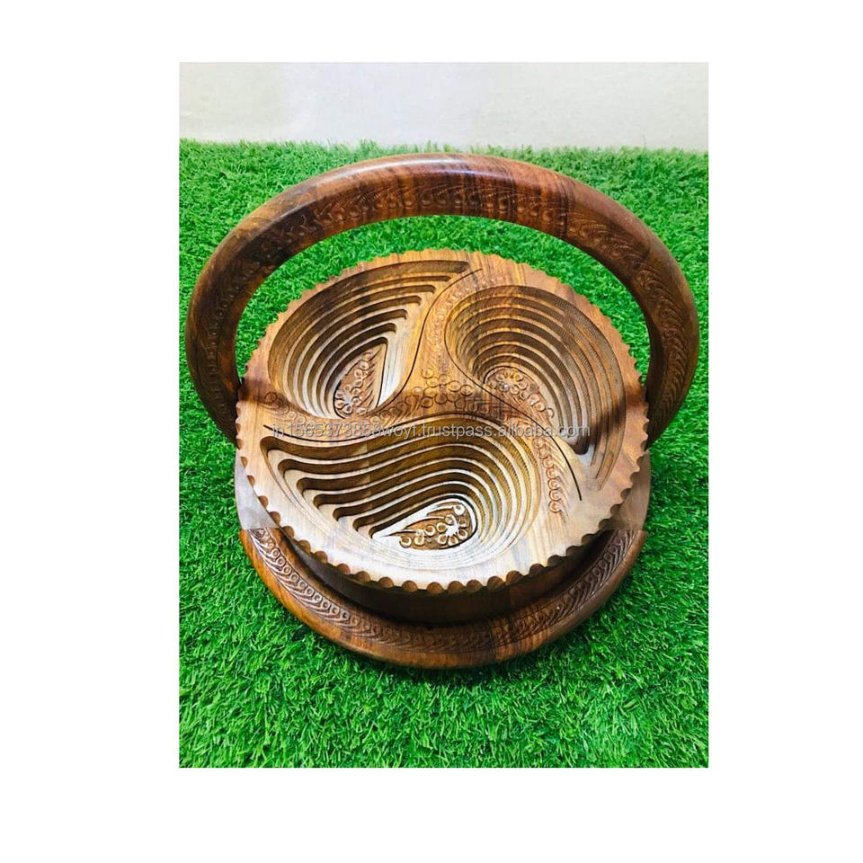 Paniers de fruits en bois faits à la main au design unique avec poignée pour la maison, l'hôtel et le restaurant disponibles à un prix abordable