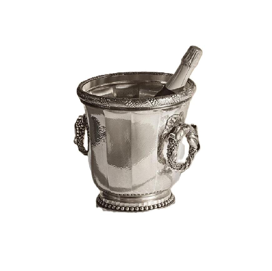 Seau à glace en métal au design unique avec poignée en anneau, couleur argent, pour table, champagne, bar, refroidisseur de bière