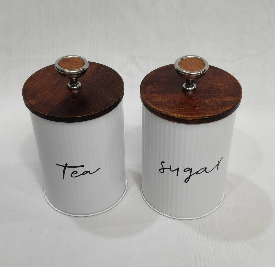 Conteneur en acier inoxydable au design unique pour la cuisine et le stockage de fruits secs, boîte métallique avec finition blanche.