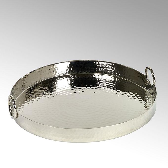 Miroir au design unique et plateau de service à dessert rond en aluminium avec finition élégante, parfait pour les hôtels et les restaurants