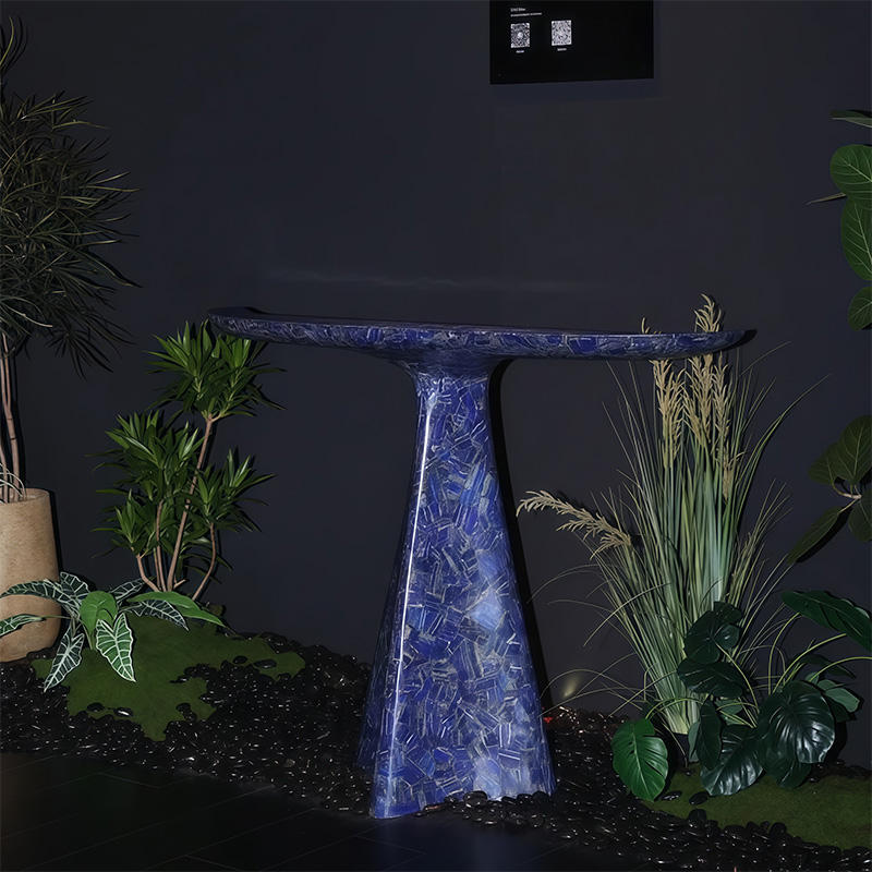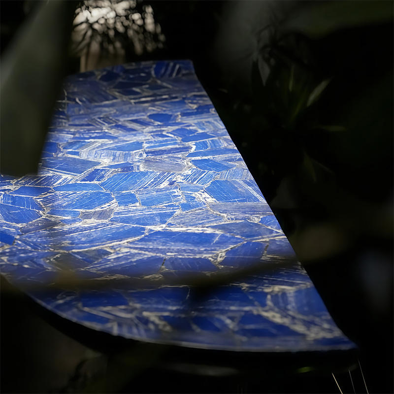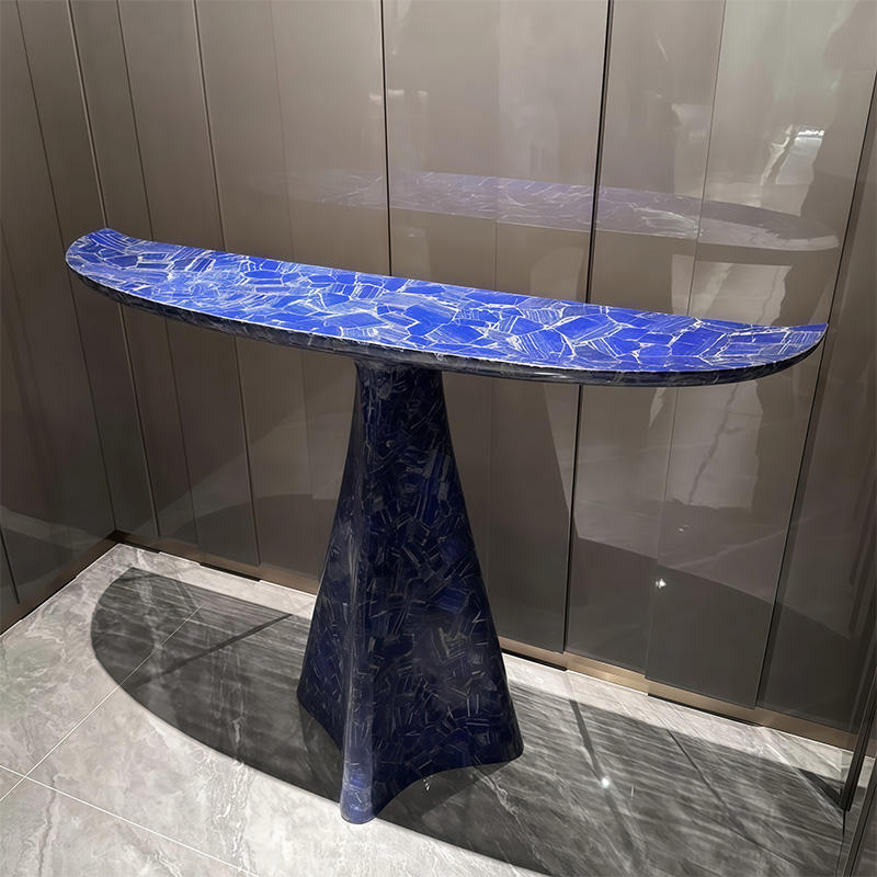 Meubles en pierres précieuses naturelles au design unique, table console en lapis lazuli bleu pour la décoration de villa et d'hôtel