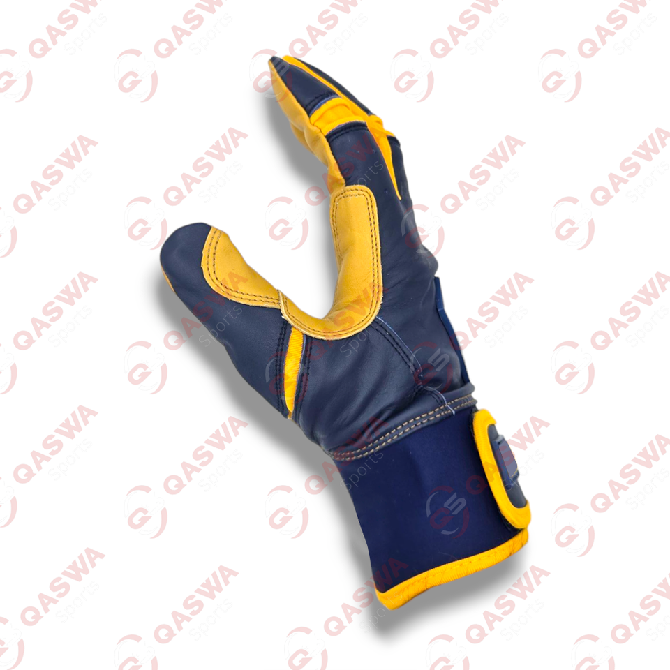 Gants de frappe de baseball professionnels en cuir, design unique, combinaison or marine, manchette courte, légers, respirants, durables, antidérapants