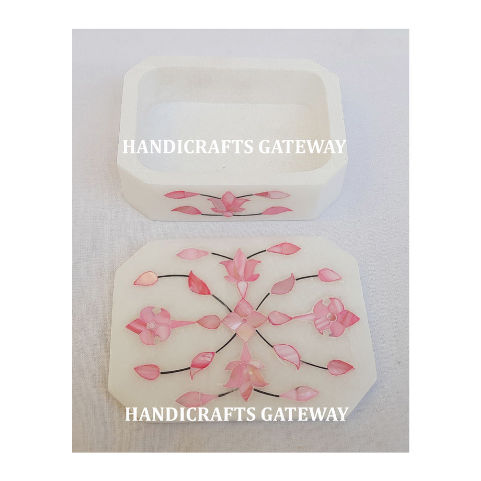Design unique nouvelle vente pour le prix budgétaire à la main finition fine marbre blanc nacre incrustation pierre boîte motif floral