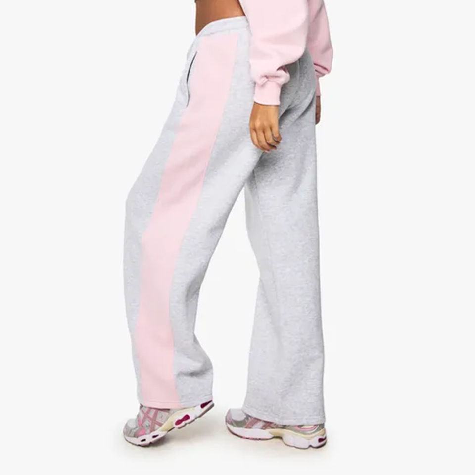 Design unique rose femmes contraste panneau latéral jambe large joggers éponge polaire doux femmes pantalons de survêtement femmes pantalons et pantalons
