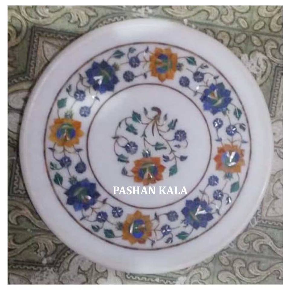 Forme ronde de plaque d'incrustation de marbre blanc pur de conception unique avec la conception de fleur pour la maison et le fabricant de but de décoration de cuisine