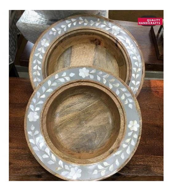 Plateau de service en nacre et bois, design unique, artisanat de qualité, certifié EPCH, fabriqué en Inde
