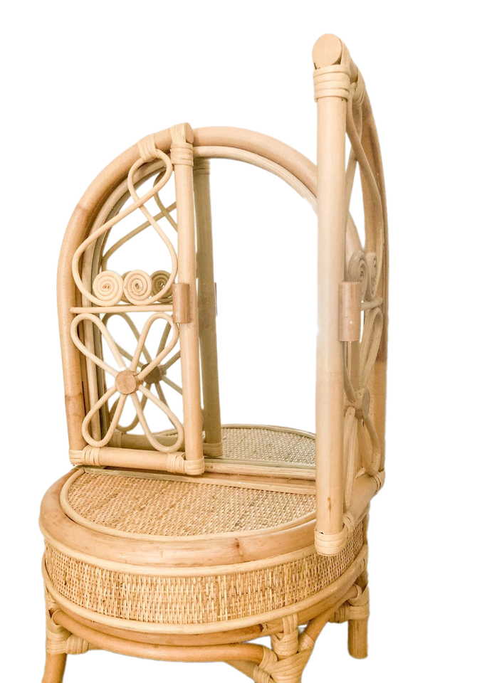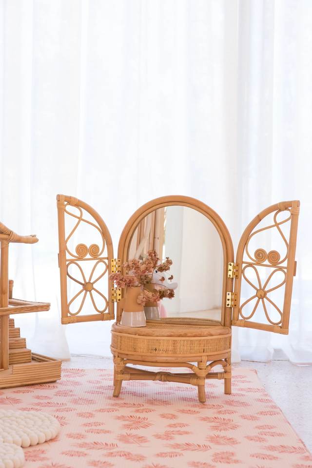 Table de maquillage de poupée en rotin au design unique jouets pour filles jolie coiffeuse en rotin faite à la main mini chambre pour filles et bébés