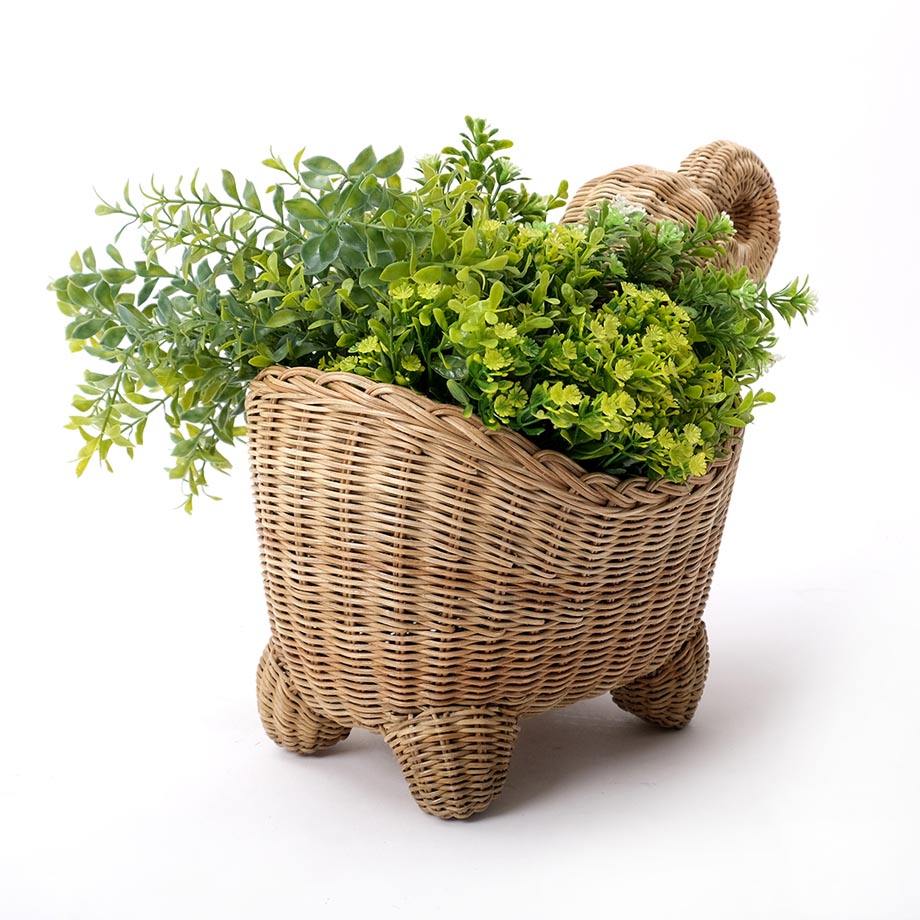 Pot de plantes éléphant en rotin de conception unique jardinière fonctionnelle en forme d'éléphant de charme pour les fournitures de jardin