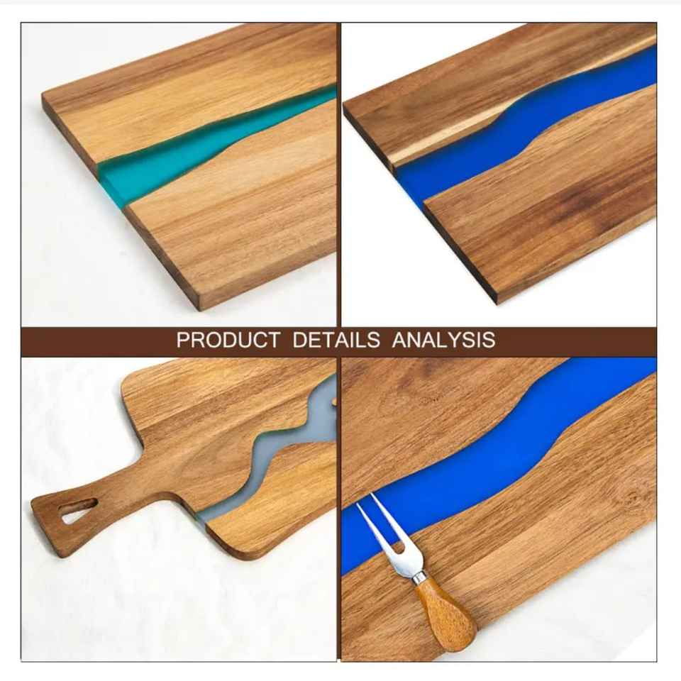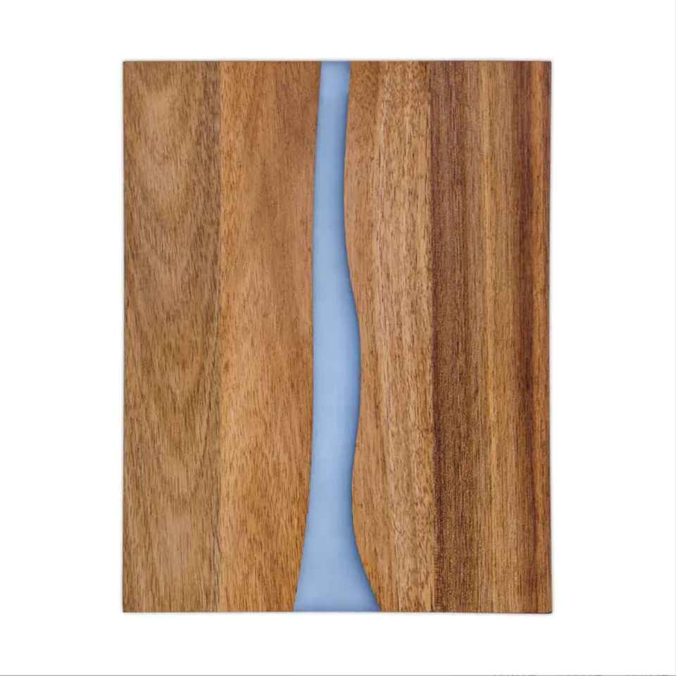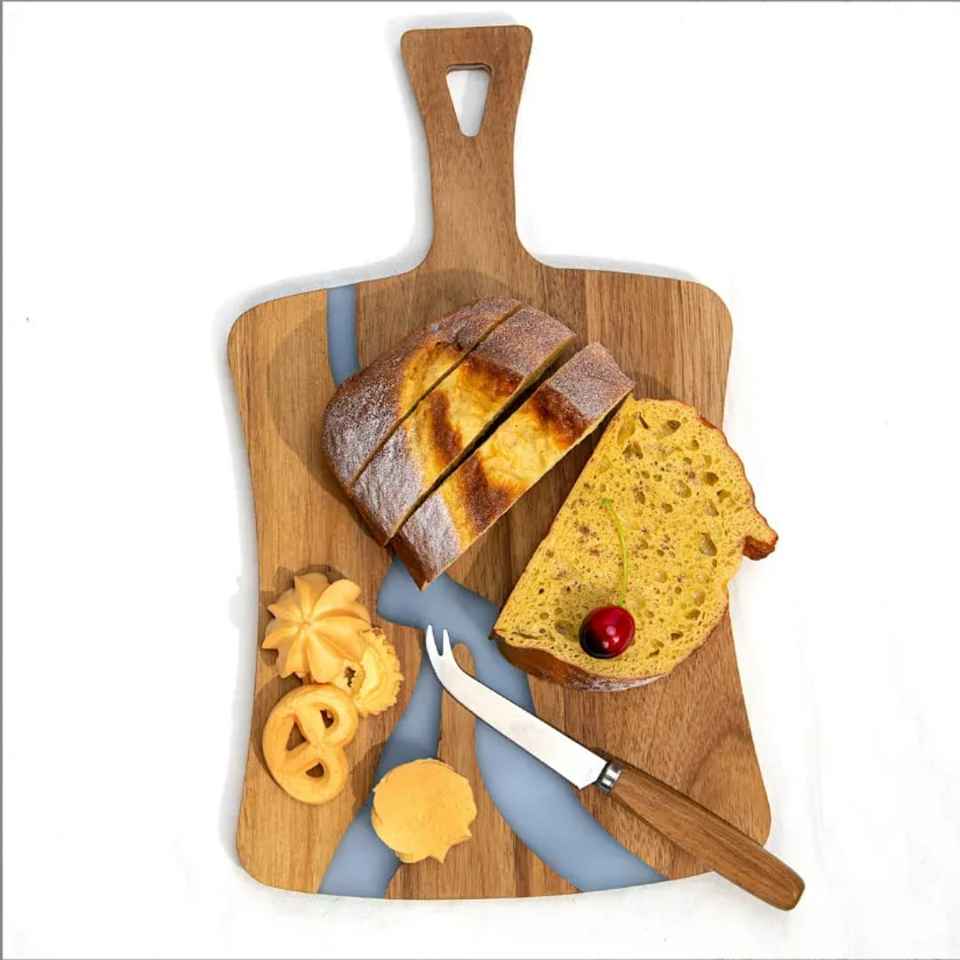 Planche à découper rectangulaire en bois et résine, design unique, écologique, polie à la main, logo personnalisé pour couper les fruits, les légumes et le fromage