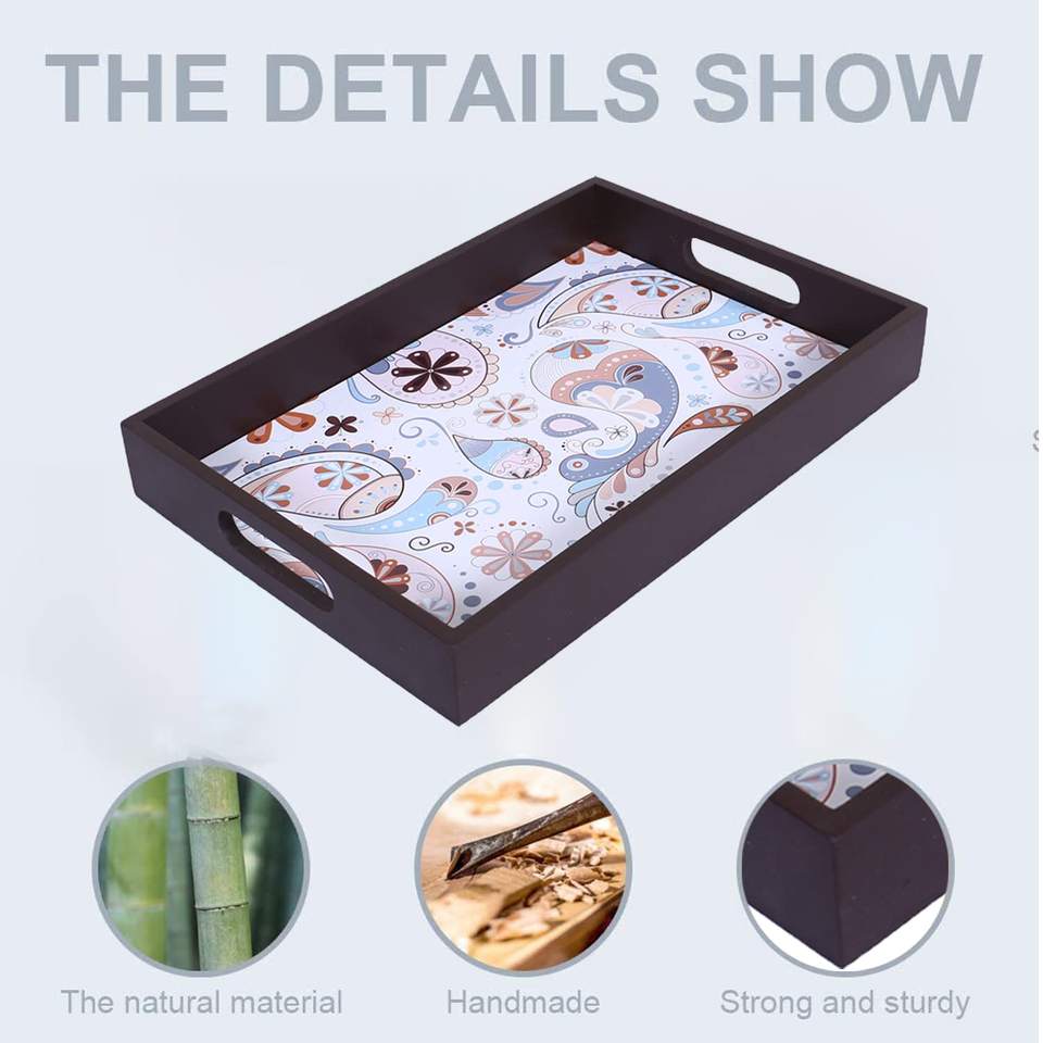Plateau de service rectangulaire en bois au design unique avec poignée de qualité standard pour la maison ou l'hôtel pour servir des aliments