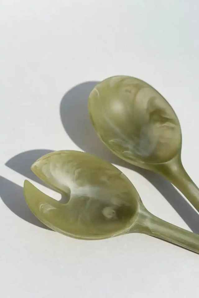 Ensemble de couverts de cuisine en résine au design unique avec poignée en béton, comprenant un service à salade et un ensemble de fourchettes, de haute qualité, pour la découpe du fromage