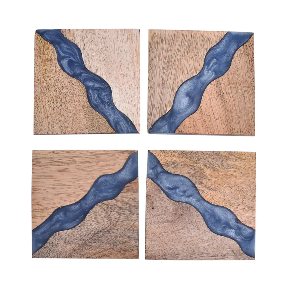 Design unique en résine et bois Nouveau design personnalisé Sous-verres à thé carrés Super qualité Sous-verres tapis et coussinets tapis isolants en liège