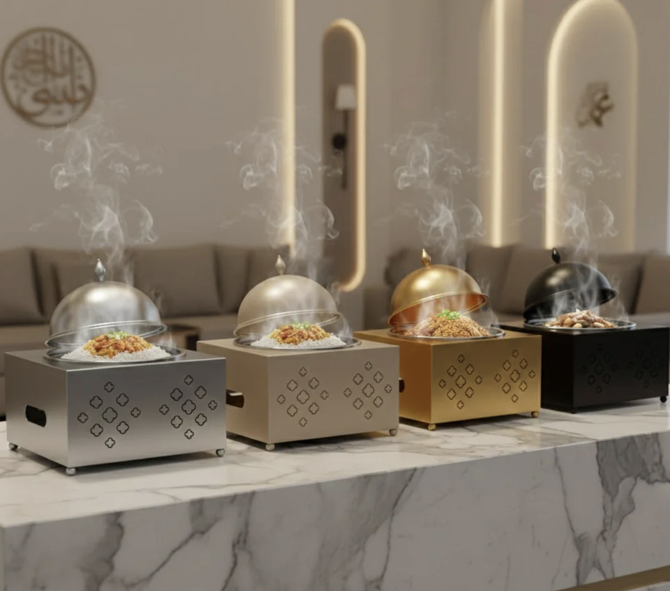 Casserole moderne en acier inoxydable au design unique, écologique, pour buffet, mariage, hôtel, restaurant, service de traiteur