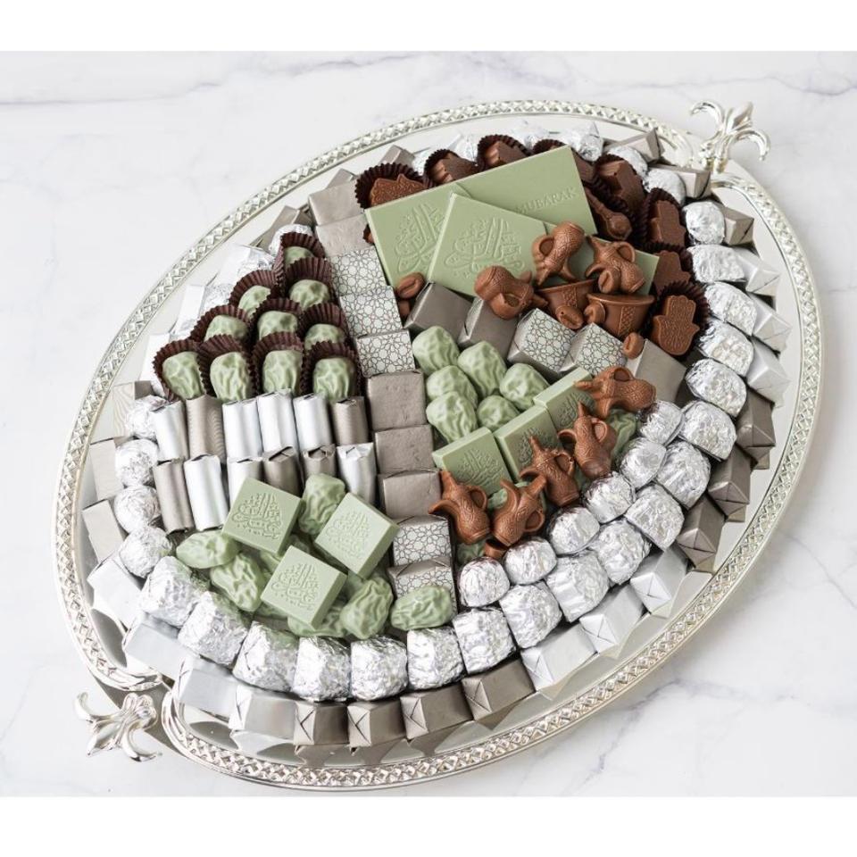 Plateau argenté au design unique Porte-chocolat et bonbons Plateau à chocolat en métal de meilleure qualité pour les fêtes de mariage Plateau de table