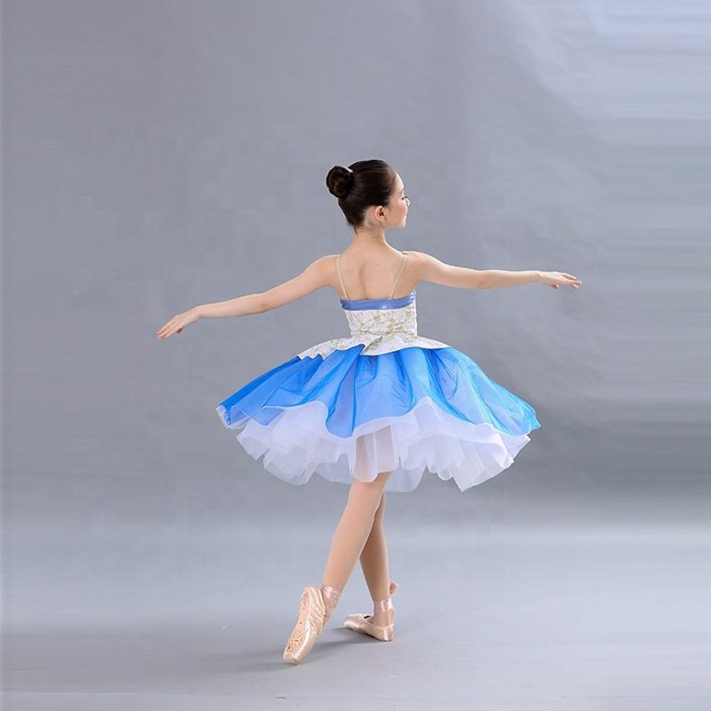 Tutu de ballet bleu spandex de conception unique vêtements de danse costume de ballet pour filles tutu de danse de performance sur scène