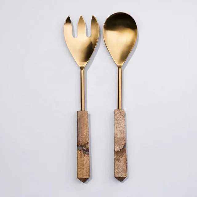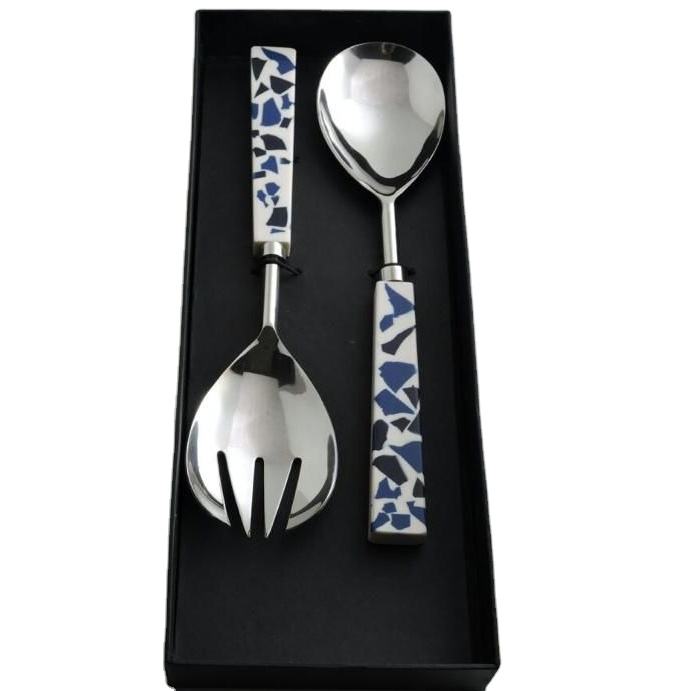 Ensemble de service à salade en acier inoxydable et poignée en résine de conception unique pour les événements de Noël et la Saint-Valentin Vaisselle utilisée Meilleure vente