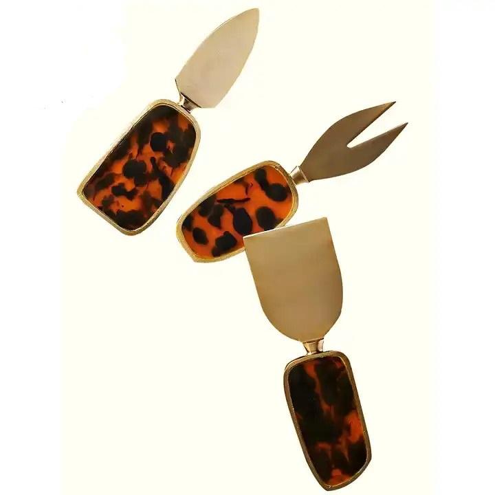 Ensemble de fromage en métal et acier inoxydable au design unique Poignées faites à la main Vaisselle d'hôtel de luxe décorative plaquée or pour le petit déjeuner