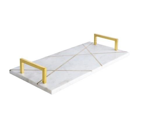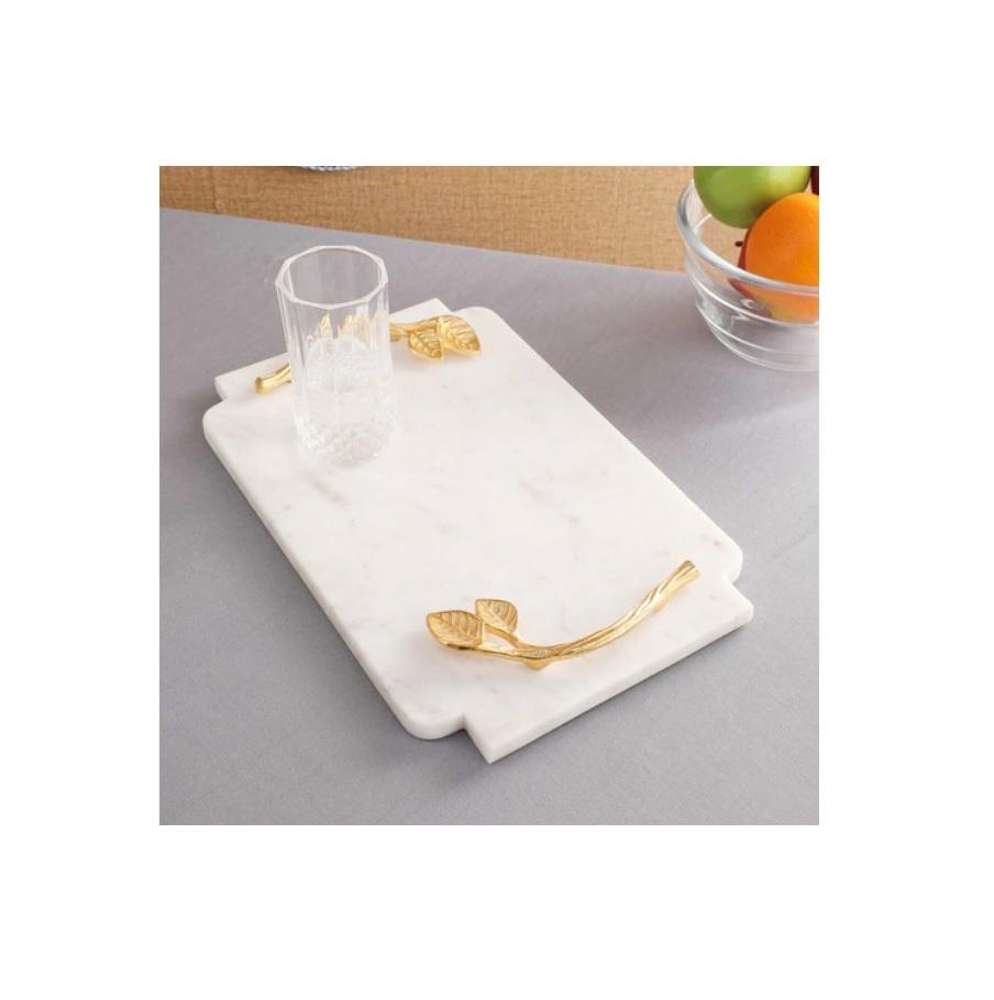 Plateau de service en marbre blanc au design unique avec poignées décoratives en laiton Plateau de service pour ustensiles de cuisine
