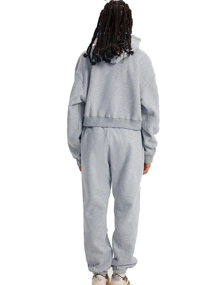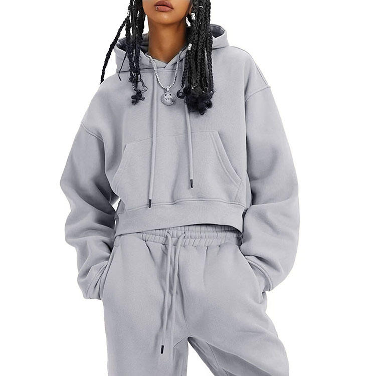 Unique Design Women's Pullover Cropped Hoodie & Drawstring Waist Sweatpants Sets Breathable Windproof Crop Tracksuits Female