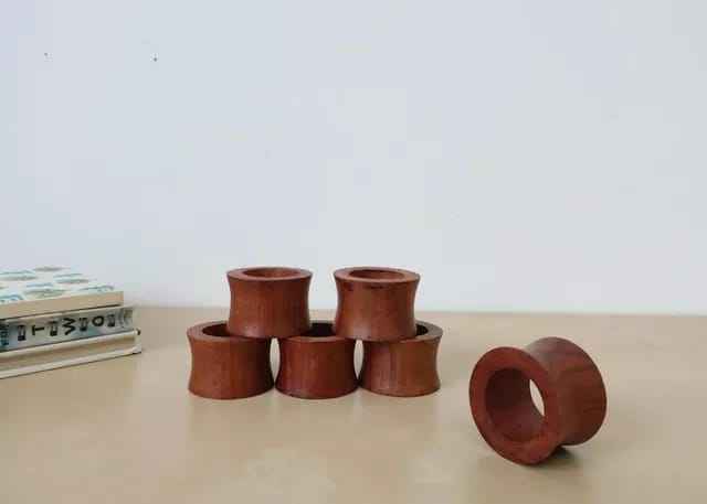 Ensemble de 4 anneaux de serviette en bois au design unique, anneaux de serviette en bois massif de couleur marron, forme ronde, pour table et ustensiles de cuisine