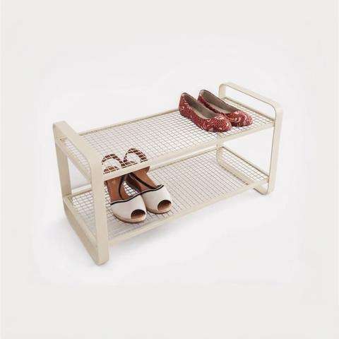 Organiseur de chaussures en bois au design unique pour le rangement dans le salon, avec motif décoratif et base stable.
