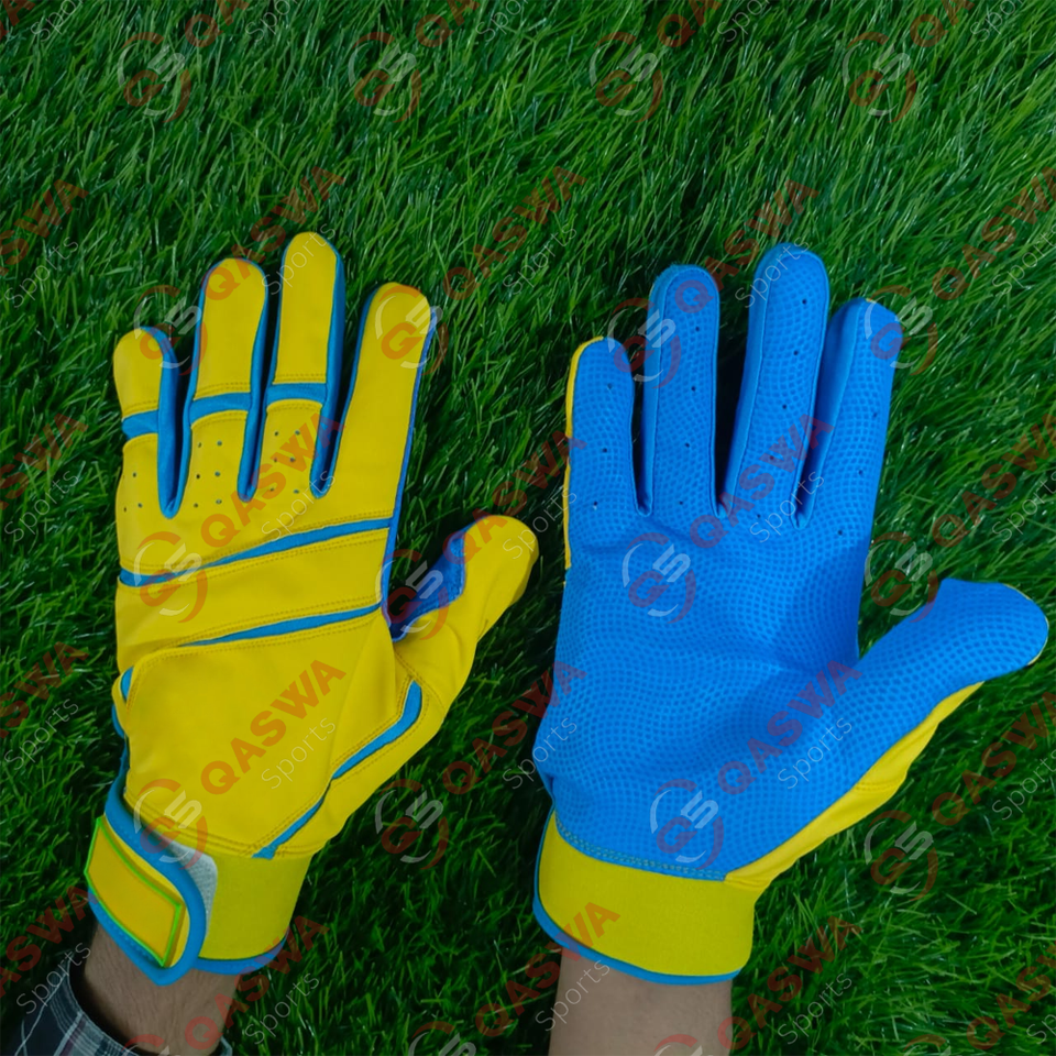 Gants de baseball de softball en cuir combinés jaune et bleu de conception unique pour la frappe disponibles à bas prix