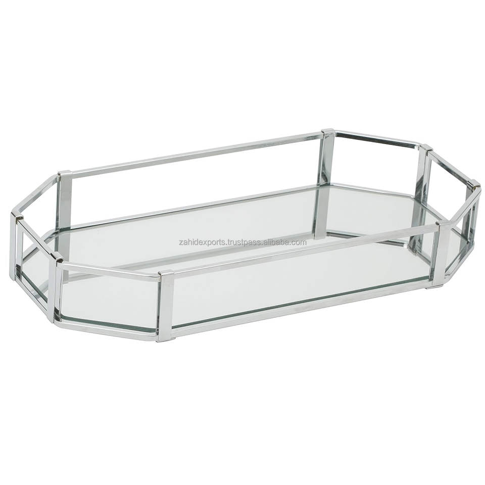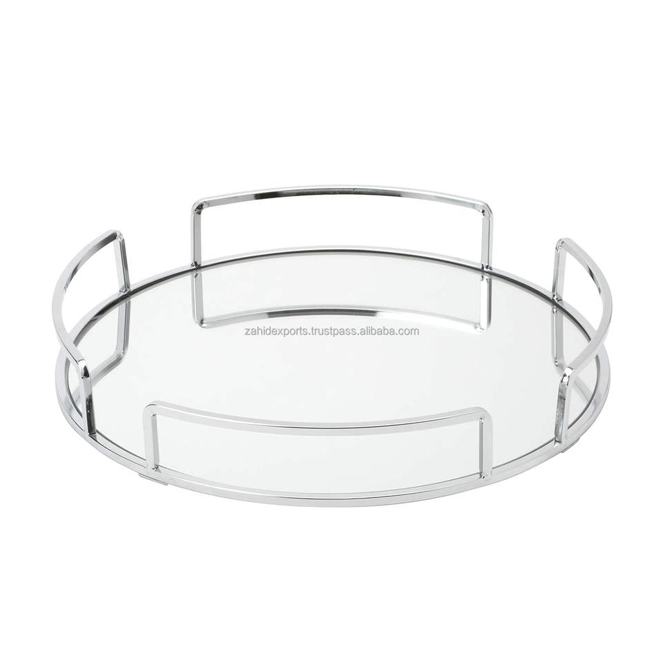 Plateau de service décoratif en aluminium finition miroir, artisanat métallique, décoration de mariage, banquet, événement, design floral de Noël Zahid