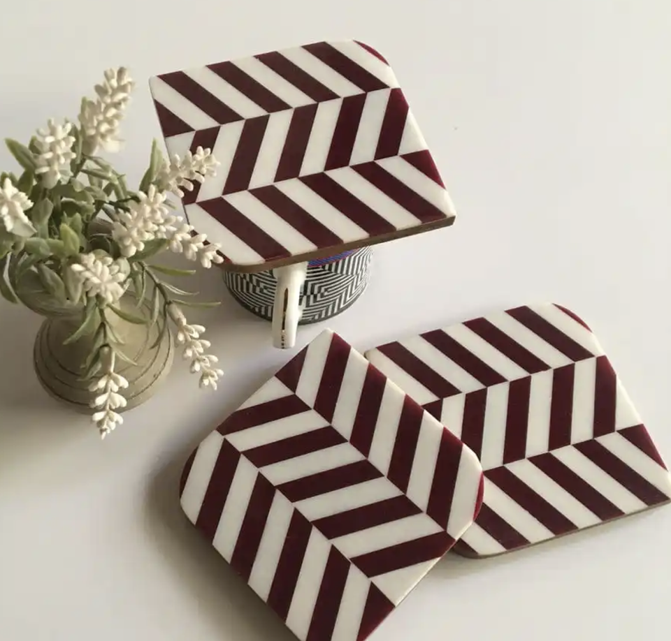 Dessous de verre incrustés d'os en incrustation de matériau pur de conception unique pour servir du thé Ensembles de sous-verres de table à café