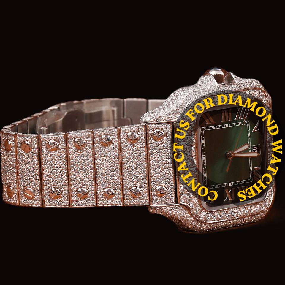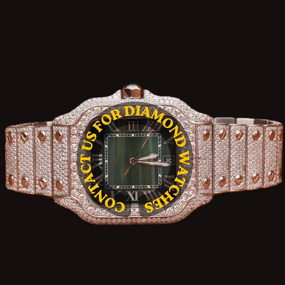 Montre de créateur unique avec cadran carré vert et chiffres romains, style hip-hop, entièrement sertie de diamants Moissanite, bijoux pour homme personnalisés de qualité supérieure