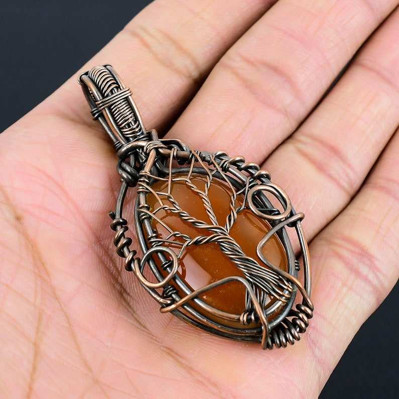 Collier pendentif en cuivre fait main de créateur unique Cornaline rouge Arbre de vie Enveloppe en fil de fer Amoureux de la nature Cadeau de toutes tailles