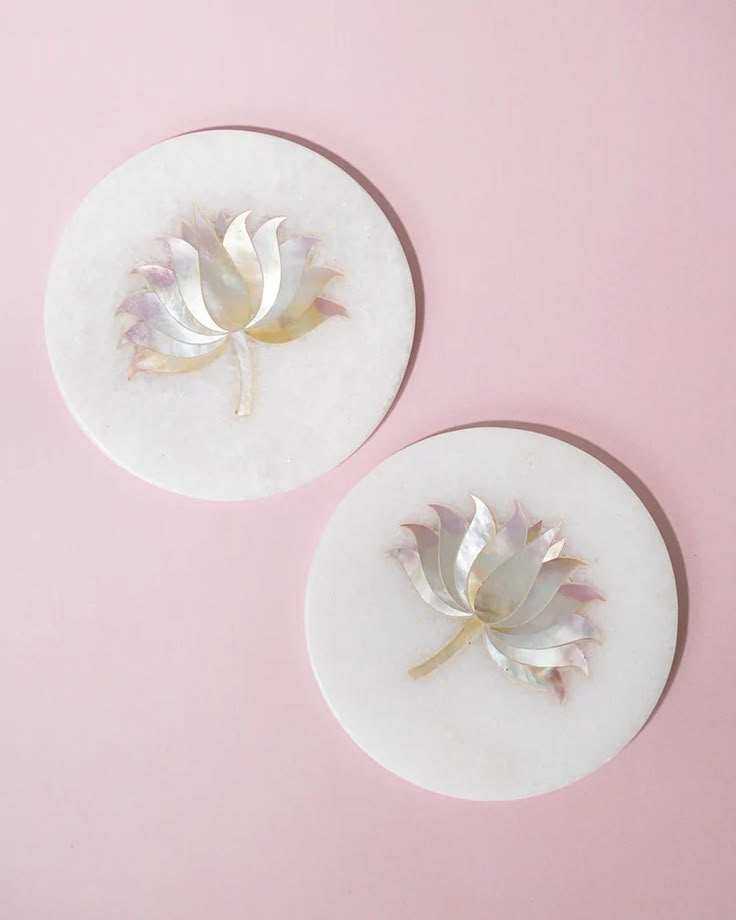 Ensemble de dessous de verre MOP de créateur unique Sous-verres incrustés de nacre pour hôtels et restros Faveurs de mariage Accessoires pour la maison pour tapis et coussinets
