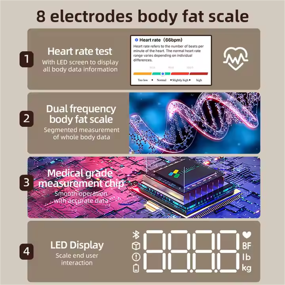 Wifi, Bluetooth, Test de Teneur en Eau et Graisse du Corps, Mesure de Teneur en eau, Pesage, Mesure de la graisse